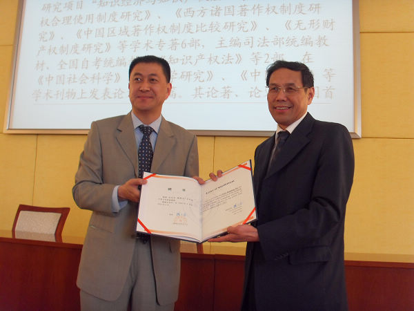 隋广军校长向吴汉东教授颁发聘书