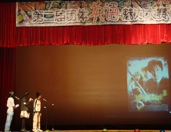 第二个环节要求各个小组分别为不同的电影片段做配音,考验的是参赛小组的团体合作性和英语会话能力。《加菲猫》、《魔戒》、《哈利波特》、《Stuart Littlle2》、《功夫熊猫》、《马达加斯加》、《圣诞营救计划》等熟悉的电影在各小组的幽默又专业的配音中,让我们仿如置身于录音棚,亲历电影工作者为电影录音一样。其中,BEAUTY&BEAST的不俗表现搏得了在场观众热烈的喝彩声。