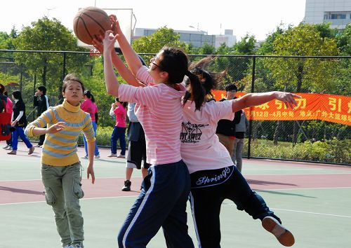 第三节是由女生上场,,每边三人只打半场,女生的进度明显慢了下来,到了半场休息时候,二场的比分还是没有任何改动。相比之下一场的女生比赛就显得激烈很多,07法一的女生率先得分,其后两队女生都有得分,07法一的女生十分厉害,第三节结束时候比分已是34:24.而二场的比分基本没有太大变化。