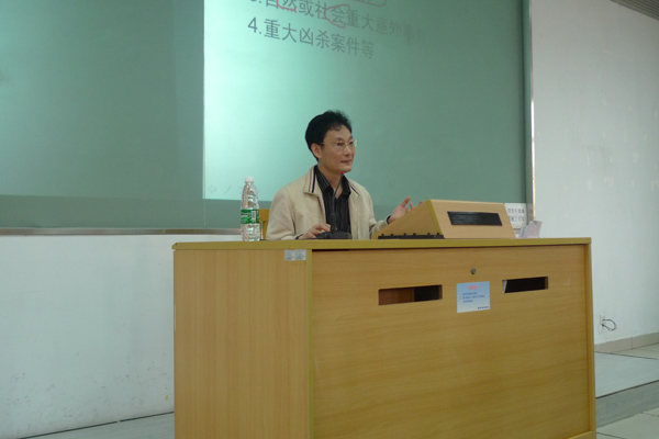 当前社会的过快发展给大学生心理造成了巨大压力,在校大学生轻生自杀的新闻在媒体上的频频曝光,为大学生心理健康敲响了警钟。郑洪波教授结合了相关的心理学知识,为我们一一讲解了大学生心理障碍与焦虑的特征。他指出,常见的大学生危机事件有自杀,急性精神病发,重大意外事件,重大凶杀事件等。而导致大学生自杀的原因多种多样,包括不适应环境,人际关系差,家庭经济困难,生命意义的缺失,心理起伏大,理想落空等。“世界上没有人对自杀有免疫力,社会的各个阶层及各类人都会有自杀的念头与可能。”郑教授说道。