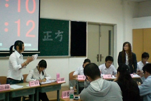 在7点30分首先进行的季军争夺赛中,08国政和08法2就“环境问题的解决应该主要依靠法律手段还是科技手段”这个辩题展开辩论。