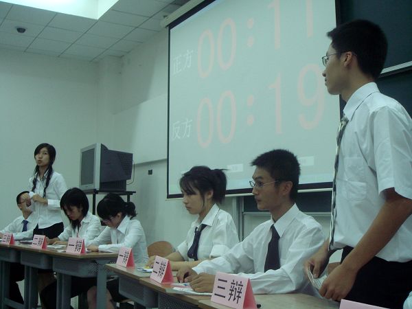 月30日晚7点30分,法学院与管理学院联合举办的辩论表演赛暨两队招新宣传会在教学楼F315隆重举行。双方辩论队分别都由05、06及07级的同学组成,阵容强大。而法学院辩论队05级队长郑慧琪同学和06级队长汪洋同学担任了此次活动的评委。