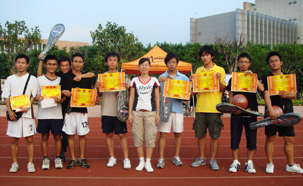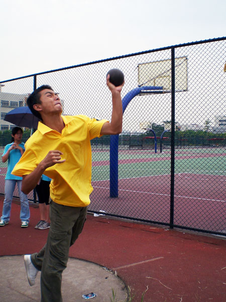 在男子铅球比赛中夺得冠军的是来自06国政的侯运男,8米73的成绩让他笑傲群雄,满怀雄心壮志的他在比赛结束后更誓言在一个月后的校运中努力为法学院争光。在女子组中,06法2的李晓燕以8米44的成绩将该此项目的冠军头衔纳入囊中!