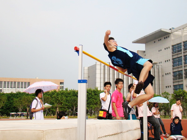 下午进行的男子跳高比赛,取得前三名的同学分别是:07法二的林周豪,07法一的李锦勇,及并列第三的07国政的伍智杰与08国政的张嘉灏。