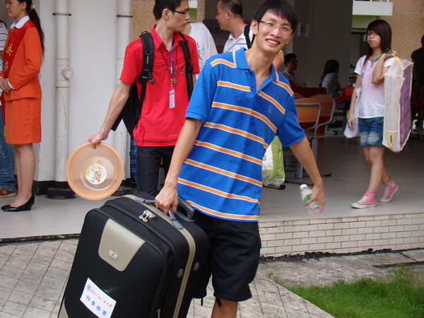 提着繁多的行李,却依然笑靥如花;步履沉重,却仍然耐心指路。在到法学院新生报到处的校道上总会有这么一出靓丽的风景线,如清风吹拂面颊,在炽烈的夏日给新生带来丝丝清凉。在这个时候,曾经娇嫩的女生也和男生一样帮新生提她们从未敢尝试的重重行李;在这个时候,如火的骄阳早被抛到脑外,一次次的汗流浃背只为给新生提供最好的服务。一位志愿者在接受记者采访时声音低哑,原来她感冒已经好几天了,顶着烈日,忍受着病痛,她帮助新生的身影却不断出现。疲惫虚弱的脸上,颗颗汗珠晶晶闪亮,帮助新生后的粲然一笑,让骄人的太阳黯然逊色。