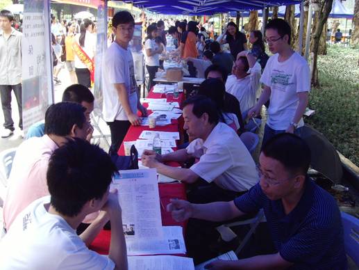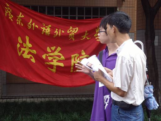 除了教授老师们的热情介绍,考生及其家长们也争相提出心中的问题和忧虑。如有些学生担心自己英语口语水平不足,被国际经济法学录取的可能性较小;有些学生则对课程内容的涉外性表现出极大兴趣,但又担心自己分数不够;有些学生则表现出对公检法部门工作的向往,等等。对于他们的问题,老师以及部分工作人员都一一耐心地做出客观的解答以及衷心的鼓励,并对他们报考广外法学院表示欢迎。
