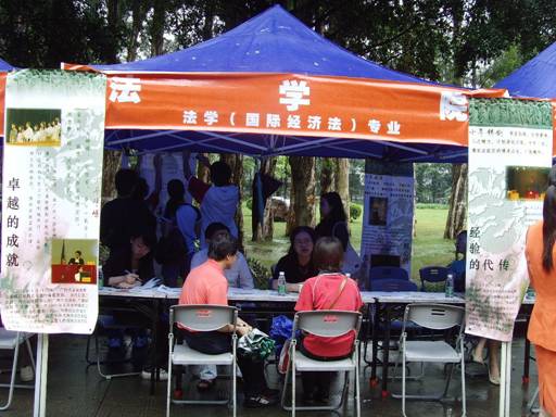 6月14日,广外大年度盛事——第九届“大学开放日”在南北校区同时拉开帷幕。本届“大学开放日”以刚刚参加完高考的高三考生及其家长为主要对象,介绍我校2008年招生政策;各学院还摆摊设点提供各专业的咨询。法学院当然也不甘落后,请来法律系、民商法系、国际经济法系、国际政治系以及外交学系的学科带头人坐阵,以专业的态度展示了广外法学的独特魅力。