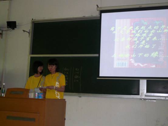 “去年的夏天,59颗心灵怀着各自的理想走到了一起,共同编织着05法一团支部的温馨与和谐……”法一班从新班集体的角度,向观众展示了法一同学在各种团日活动中由陌生到熟悉的变化过程,因为他们的口号是“为构建和谐团支部而共同努力”。