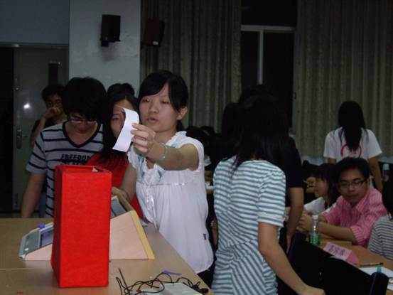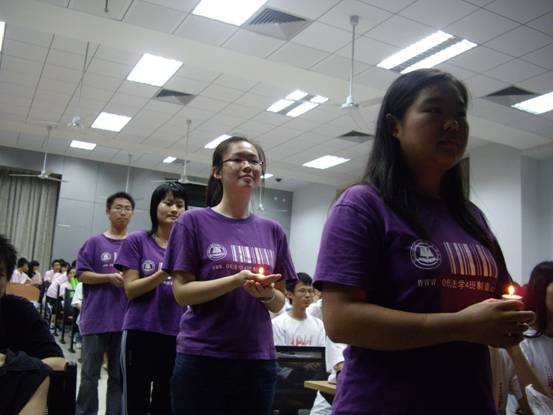晚上7点,评选活动正式开始。由主持详细介绍了评选细则后,06级的各团支部陆续上台展示了各自团日活动的优秀成果。