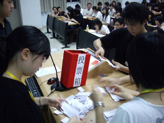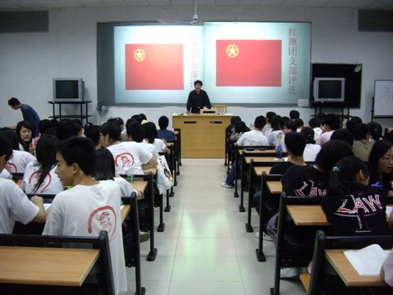 4月9日,法学院06级红旗团支部评选大会在南校区教学楼F208隆重召开。法学院主席团的5位成员及06、07级的各班代表共同担任评委。当晚,现场座无虚席,气氛热烈。