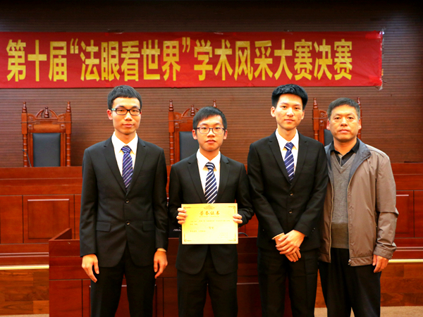 本网讯(文字:戴志诚 刘纾莛 摄影:江晓璇 黄晓榆 网编:王昶天) 2015年12月9日,第十届“法眼看世界”学术风采大赛决赛在大模拟法庭正式拉开序幕。出席本次比赛的嘉宾为法学院团委书记陈宇,评委老师为王树春、杨嵩棱、修文辉、叶昌富、常廷彬和张爽。本次比赛中,参赛队伍首先进行为时6分钟的论文展示环节,然后接受评委老师提问,并在三分钟内回答。