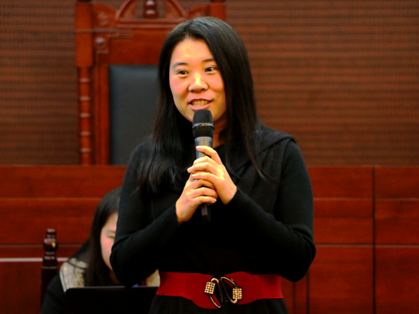在最后的法学组评委点评阶段,张爽感概在本次比赛中,自己学到了知识。她表扬了同学们发现问题的能力,并为同学们的科研热情点赞,同时也为组织此次活动的团学点赞。