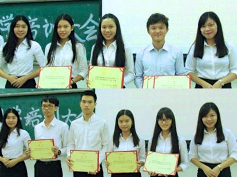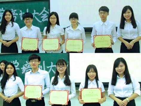 宣誓过后便到了礼仪培训环节。首先是外联部部长梁紫瑜从个人礼仪,日常礼仪技巧及关于尊重问题给我们上了一堂课;办公室主任单章凝则给我们带来了团学物资、办公室使用及文档规范的相关知识;紧接着是办公室副主任梁媛道出了她对财会管理方面的指导;最后生活部部长罗莹的纪律培训加强了大家的纪律意识。
