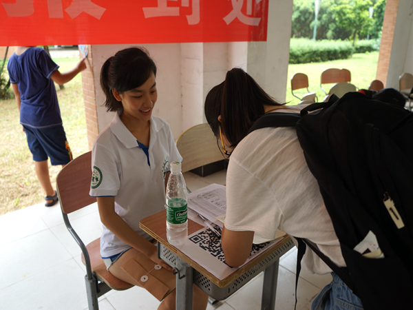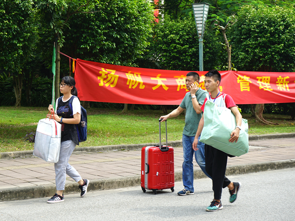 27日当天,现场工作安排井井有条。中行十字路口、隧道口、一饭、二饭、三饭内环处,1栋、11栋宿舍楼下,工作人员为新生及家长指引路线、讲解报道流程、维持秩序。新生及家长陆续搬着行李来到学校。在公交车站、十字路口和生活区入口耐心等候的志愿者们热情地提供帮助,协助他们搬运行李,将他们指引到注册处。