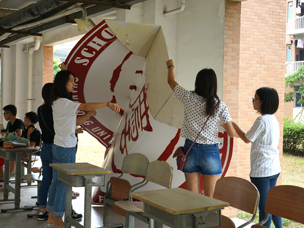为了方便新生报到,8月26日,工作人员提前在校道上张贴指示牌、设置路标并悬挂“法学院新生报到处”的横幅和竖幅,为新生指引路线。在法学院新生报到处,桌椅、院板、院旗、院徽悉数到位。此外,16级朋辈导师们也在各自的班级整理资料,等待新生前来报到。