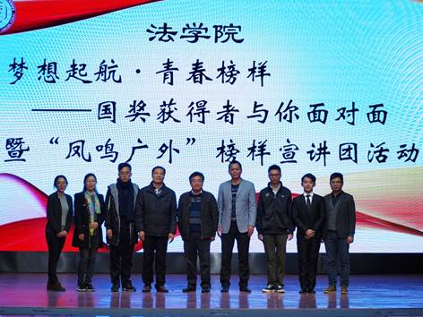 本网讯(文字:雷劭璇 摄影:阮嘉欣 网编:无) 为充分发挥优秀学生的先锋模范作用,进一步培养学生的感恩意识和责任意识,激励广大学生成才报国,2017年3月16日下午,法学院“梦想起航青春榜样—国奖获得者与你面对面”暨“凤鸣广外”榜样宣讲团活动在B8学术报告厅召开。
