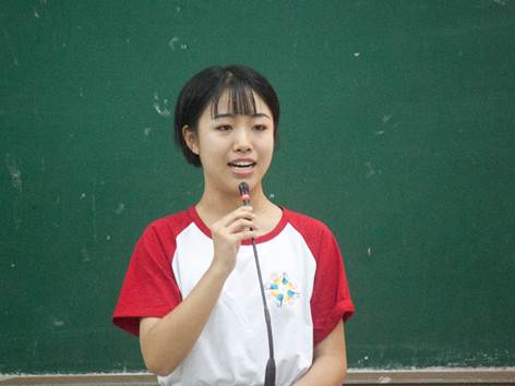 接下来,文娱部的肖佳怡同学作为干事代表发言。她说道,团学为她自我能力的展示与兴趣的发展提供了机会与条件;在团学,她能接触到一个优秀的集体,文娱部,她培养了一种文娱情怀、一份严谨认真的工作态度。同时,她从工作纪律与工作效率两个方面提出懂礼貌、做好工作计划的必要性。