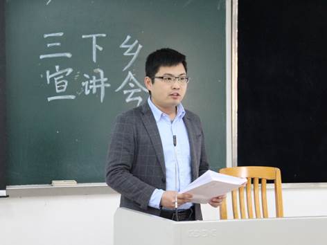 本网讯(文字:沈铮 摄影:温方圆 ) 3月22日下午,2018年法学院三下乡宣讲会在教学楼G208顺利举行。出席本次宣讲会的嘉宾有法学院团委书记陈宇、17级辅导员廖伟智、学生会副主席陈家峤及上一届三下乡优秀队伍代表。