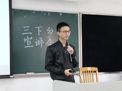 随后陈宇老师指出,三下乡的举办初衷是深入社会,了解基层,懂得国家的基本情况,培养大学生的家国情怀。因此,他希望同学们可以铭记初衷,真正调研一些与社会时事、与法学院学生关系更为紧密的社会问题;同时,通过三下乡这个活动,真正学到一些有利于大学生自身成长的经验。随后陈宇列举了今年学校较为推荐的社会调研选题,包括习近平总书记的系列讲话、精准扶贫、改革开放成果、中国企业创新创业调研等。最后,他希望同学们可以对自己有更清晰的定位、敢于去做一些不一样的实践,让三下乡成为一个提升质量、有内涵、对大学生成长有帮助的实践活动。