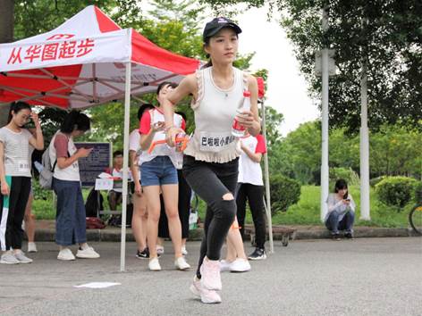 马拉松接力赛当日下午,阳光明媚而不刺眼。参赛选手们在检录处报到后,在工作人员的带领下到达各个接力点。赛道旁设有医疗点和补给点,在游戏区也备有膏药和饮用水,为选手提供体贴的人性化服务。选手们在工作人员的协调下开展比赛,既保证了学生的安全,又不对校道交通产生阻碍。