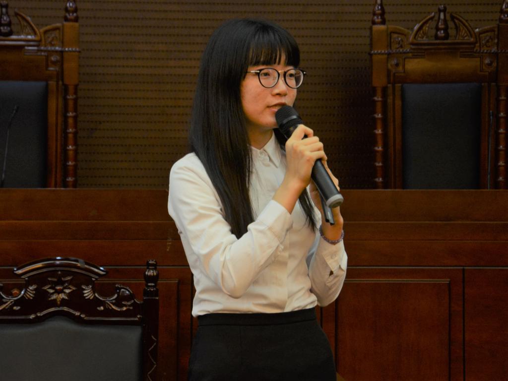 首先登场的是来自法学1706班的关诗敏。她从自我认识、职业兴趣、理想职业和就业途径四部分介绍了自己的职业生涯规划。她为自己实现做一名律师的职业理想规划了两条可行的道路,随后列出了大学四年的年度计划表。在点评环节,评委建议她应该更加精准地定位自己的求职方向,培养自己的兴趣。