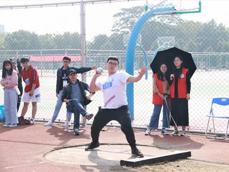 而在标枪赛与铅球赛中,代表法学院出战的李绮琪、蔡雨桐等人迎着阳光,坚定地扔出手中的标枪、投出沉甸甸的铅球。而铅球选手熊思桦凭借着自己以往的经验以及力量的优势,在扔铅球赛事中一展风采。那厚实的手掌紧握住铅球,随后,他奋力一掷,铅球随之而去,在空中划出了完美的弧度。最终他也取得佳绩。