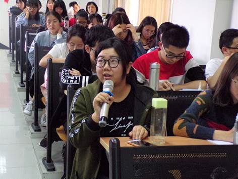 从微观角度切入,卢纯昕以网络游戏的著作权和作品的定义与类型为例,简明扼要地分析了侵权的表现以及判定方法。其中,她又让同学们了解了“类电作品”和“软件作品”的概念以及区别。她以设计网络程序为例子,从三个方面去判定是否有侵权的现象。同时,她也向现场的同学们进行提问,当问及一些具体的概念或让同学们谈谈分析思路时,同学们都结合自身所学的专业知识与讲座内容进行了回答。最后,卢纯昕通过比较电影的单向性以及网络游戏的多面性,深入浅出地讲述了知识产权法在具体实践中的应用,而同学们也都受益匪浅。