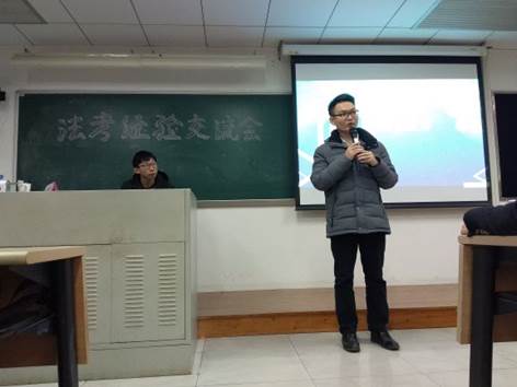 本网讯(文字:法学院团委学术部 摄影:法学院团委学术部 ) 12月12日晚,法学院本科生法考经验交流会在G308顺利举行,众合教育广州分校校长韦聪先生、法学院团委书记陈宇老师及李峻铭、王婧茹、戴志诚、汤艾熹等法学院师生出席了本次交流会。