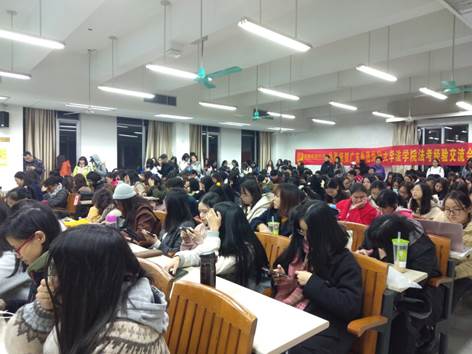 陈宇老师感谢了到场的观众和嘉宾,介绍了我院2015级本科生的考试通过率为66.05%,连续两年增幅达10%以上,创历史新高。近年来,我院通过开展专业教育、名家教授专题讲座、法院旁听、律所参观、专业实习、模拟法庭竞赛、社会调研、普法宣传进社区等教学实践活动,充分体现了本科教学及学风建设的良好成效。陈宇老师勉励同学们刻苦学习,再创法考佳绩。