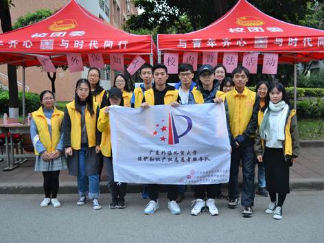 本网讯(文字:吕鹏飞 摄影:陈桑榆 ) 为了提高广外学生知识产权维护意识,12月14日,由广东外语外贸大学法学院、广东省知识产权维权援助中心主办,广东外语外贸大学法学院保护知识产权服务队承办的校内知识产权普法活动在南校区校道旁举行。