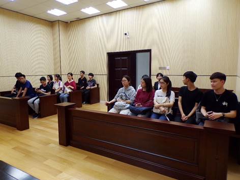 在庭审正式开始之前,工作人员为同学耐心全面地讲解了有关人民法院的基本服务以及设施。本次法院旁听团日活动将同学们分成两批,第一批同学进入七号审判庭进行旁听,而第二批同学则在十七号审判庭。