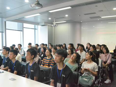 在张由律师的带领下,同学们分别参观了律所的会议室、休息区和办公区。张由律师十分看重这次的分享交流活动,他先通过一则宣传短片向同学们简单介绍了金鹏律师事务所的发展历史。接着他详细讲述了金鹏内部的交流活动,如一月一次的演讲沙龙及独具特色的“老罗龙门阵”,让同学们感受到了金鹏对人才培养的重视。通过对金鹏春晚、辩论赛、运动会及其参与的慈善活动和司法援助的展示与描述,同学们深切地感受到了金鹏律师事务所旺盛的生命力和积极向上的企业精神。最后,张由律师介绍了律所大堂“百凤归巢”的深刻寓意以及各会议室名字的内涵。