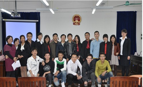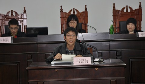 12月7日,我院2011级法律硕士研究生在北校区模拟法庭教室举办了“付波抢劫、故意伤害案”模拟法庭庭审。广东智洋律师事务所朱海波律师、法硕中心常廷彬老师、叶昌富老师、宁少媛老师观看了模拟庭审。