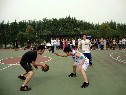 第二节比赛双方女队展开激烈抢夺战。09法二首先发力,拿下4分,扩大优势。第三节,男队重燃战火。09法三队长李煜杰率先发难,连取三分,将分差缩小到两分。双方你来我往,在离完场还有三分钟的时候打成11:11。随后比赛陷入僵局,此时09法二11号球员任剑生一记穿针,拉开分差,而09法三虽凭罚球追回一分,但任剑生的又一记两分球,将比分定格在15:12,09法三以三分之差惜败。