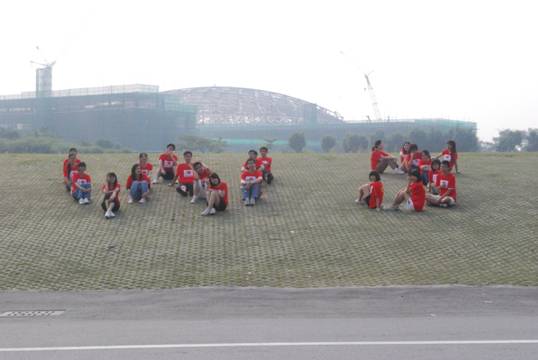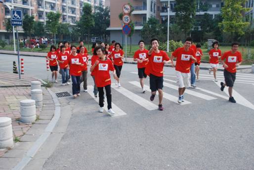 本网讯 2009年10月28日,我团支部开展了以“我爱我的祖国——迎祖国华诞,做亚运先锋”为主题的团日活动,在大学城内环和中心湖周边,留下了属于我们自己的足迹。