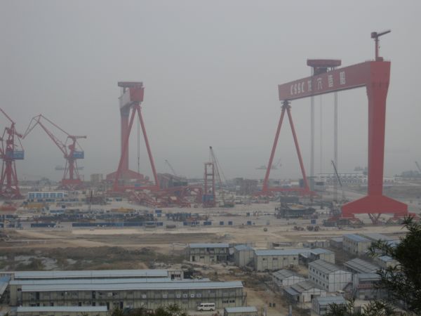 接下来,同学们在领导代表的带领下参观了龙穴造船公司的造船基地。通过领导代表的介绍,同学们了解了许多如预处理设备、加工设备、装焊设备、分段涂装工场、预舾装场地及设备、船坞及码头等造船设施的基本资料和运作情况。