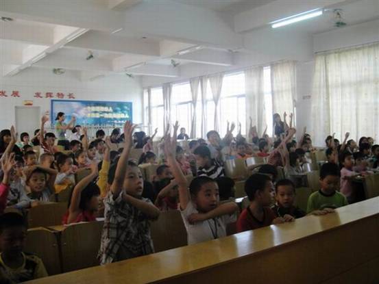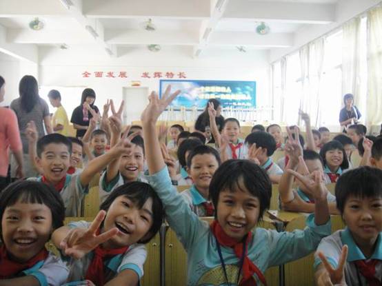 这次义教中,我们全班52位同学全体上阵,分为亚运文明小先锋教育小组、音乐小组、英语小组、体育小组和摄影小组。每一个同学都尽心尽力,积极热情将义教活动进行得如火如荼,使小朋友们受益匪浅。印象最深的是升国旗仪式,无论是我们同学还是小朋友或者是屏山小学的老师们都是无比的认真、深情,表达了对祖国最诚挚的祝福和对广州亚运的无比期待。亚运课堂上,小朋友们的聪明与好学;音乐课堂上,小朋友们的活泼与灵动;英语课堂上,小朋友们的才智与天赋;体育课堂上,小朋友们的活力与热情都让我们震惊与佩服,欣慰与感动。我们仿佛能看到祖国的明天更加灿烂辉煌,八九点钟的太阳、祖国的花朵就是这么强!