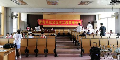 本网讯 7月10日9时,青青草原服务队队员与沙凤小学学生在多媒体教室与操场继续今天的课程授课。