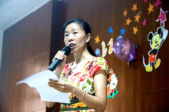 石岗小学少先队指导老师周秋霞代表学校欢迎服务队队员
