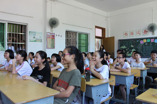 本网讯 2018年7月16日,法学自强社Stars三下乡服务队初次与揭东第一小学的同学们见面。经过前期的精心筹划和学校方面的配合,Stars三下乡服务队在揭东第一小学报告厅成功举办了本次三下乡活动的开学典礼并进行了第一次班会课。