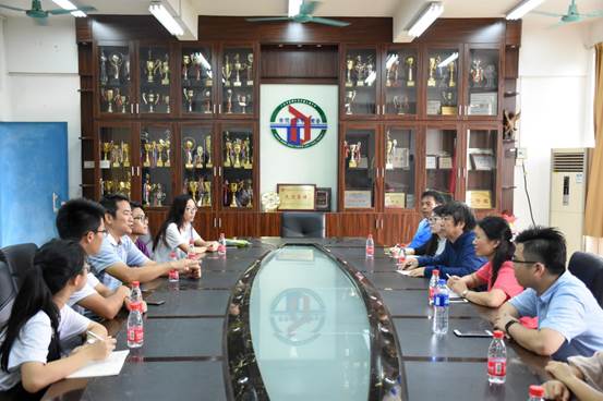 本网讯7月16日上午,广东外语外贸大学法学院党委书记周秀娇一行莅临大塘中学来慰问法学院三下乡服务队的队员。在大塘中学的会议室召开了2018年广东外语外贸大学法学院与广州市花东镇大塘中学社会实践队伍座谈会。广东外语外贸大学法学院党委书记周秀娇,肖刚教授,廖伟智老师,范丽颖老师,陈宇老师,广州市花东镇大塘中学王福权校长,高主任以及Together三下乡服务队和Forever三下乡服务队负责人参加了此次会议。