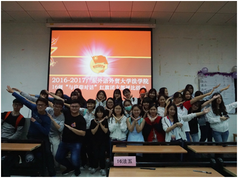 本网讯(文字:何欣贤 摄影:陈秀琴 网编:李洁盈)为了增强各基层团支部的凝聚力和创造力,促进班风学风建设,4月6日晚上7点,法学院16级的同学齐聚f208,参加以“与信仰对话”为主题的红旗团支部评比活动。出席本次活动的嘉宾有法学院16级辅导员郭嫄老师及16位大众评审。