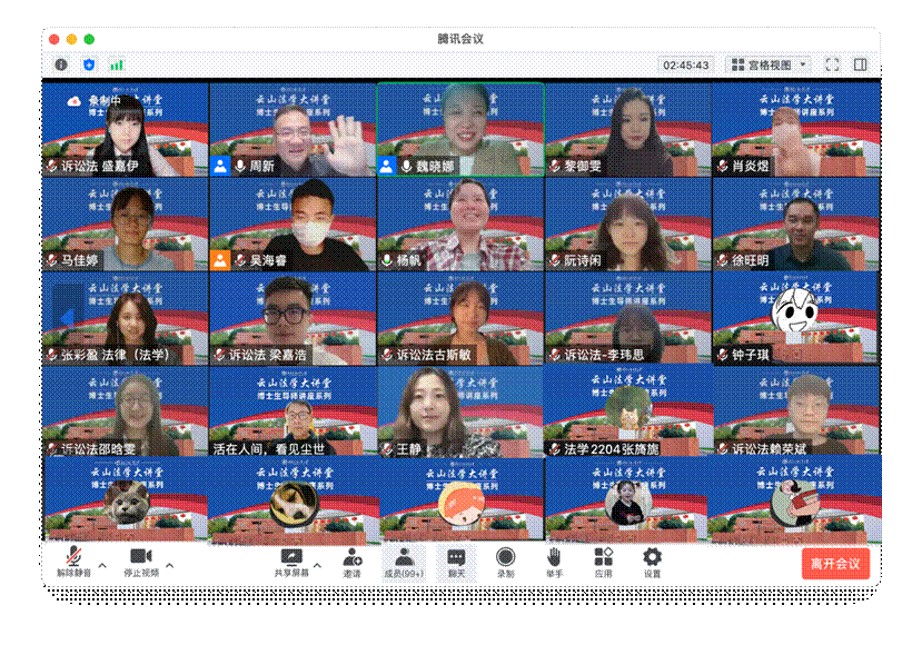 在讨论环节,魏晓娜教授与线上师生们就辩诉交易与无罪推定的冲突问题、认罪认罚从宽案件中证明标准问题、对质权在职权主义和当事人主义模式下的适用问题、协同主义的诉讼模式问题、刑事诉讼模式的调整问题以及辩护律师调查取证权的保障问题展开了深入探讨。讲座尾声,主持人周新教授对魏晓娜教授的精彩讲座表示感谢,同时感谢老师、同学们的热情参与。