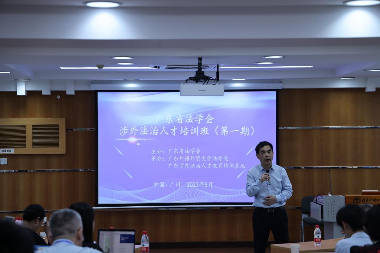 5月8日上午,由广东省法学会主办、广东外语外贸大学法学院和广东涉外法治人才教育培训基地承办的广东省法学会涉外法治人才培训班(第一期)开班仪式在广东外语外贸大学北校区举行,广东外语外贸大学法学院院长陈云良在开班仪式上致辞。法学院党委书记杨敏生,党委副书记范聪出席开班仪式。开班仪式由副院长杨桦主持。