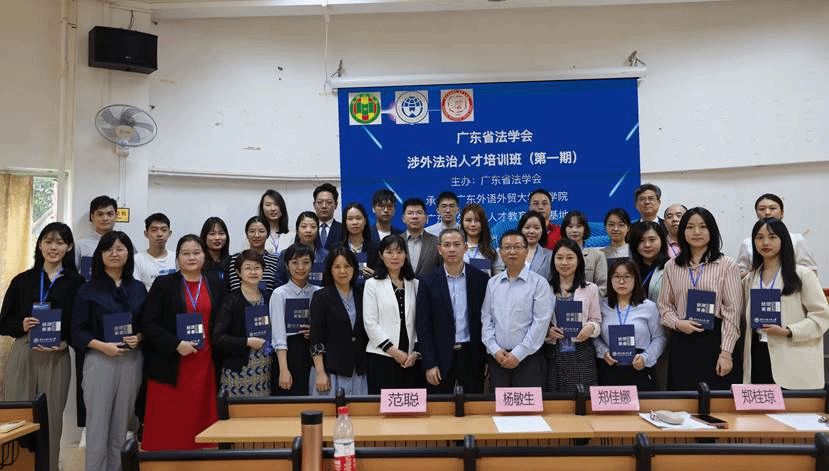 2023年5月14日,广东省法学会涉外法治人才培训班(第一期)涉外实务圆桌分享会暨结业仪式在广东外语外贸大学北校区第七教学楼110举行。广东省法学会研究部主任郑佳娜、广东外语外贸大学法学院党委书记杨敏生、广东省法学会研究部副主任郑桂琼、广东外语外贸大学法学院党委副书记范聪出席会议。