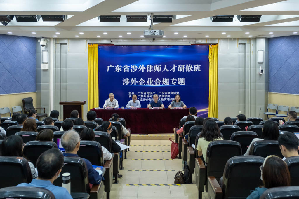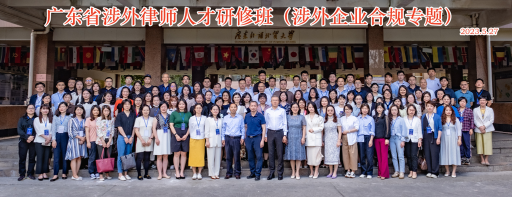 2023年5月27日上午,由广东省司法厅、广东省律师协会主办,广东外语外贸大学承办的广东省涉外律师人才研修班(涉外企业合规专题)顺利开班。广东外语外贸大学法学院党委书记杨敏生、广东省司法厅律师工作管理处四级调研员肖扬帆、广东省律师协会副会长吴兴印出席开班仪式并致辞,来自全省近120名涉外律师参加了培训。开班仪式由广东外语外贸大学法学院副院长杨桦主持。