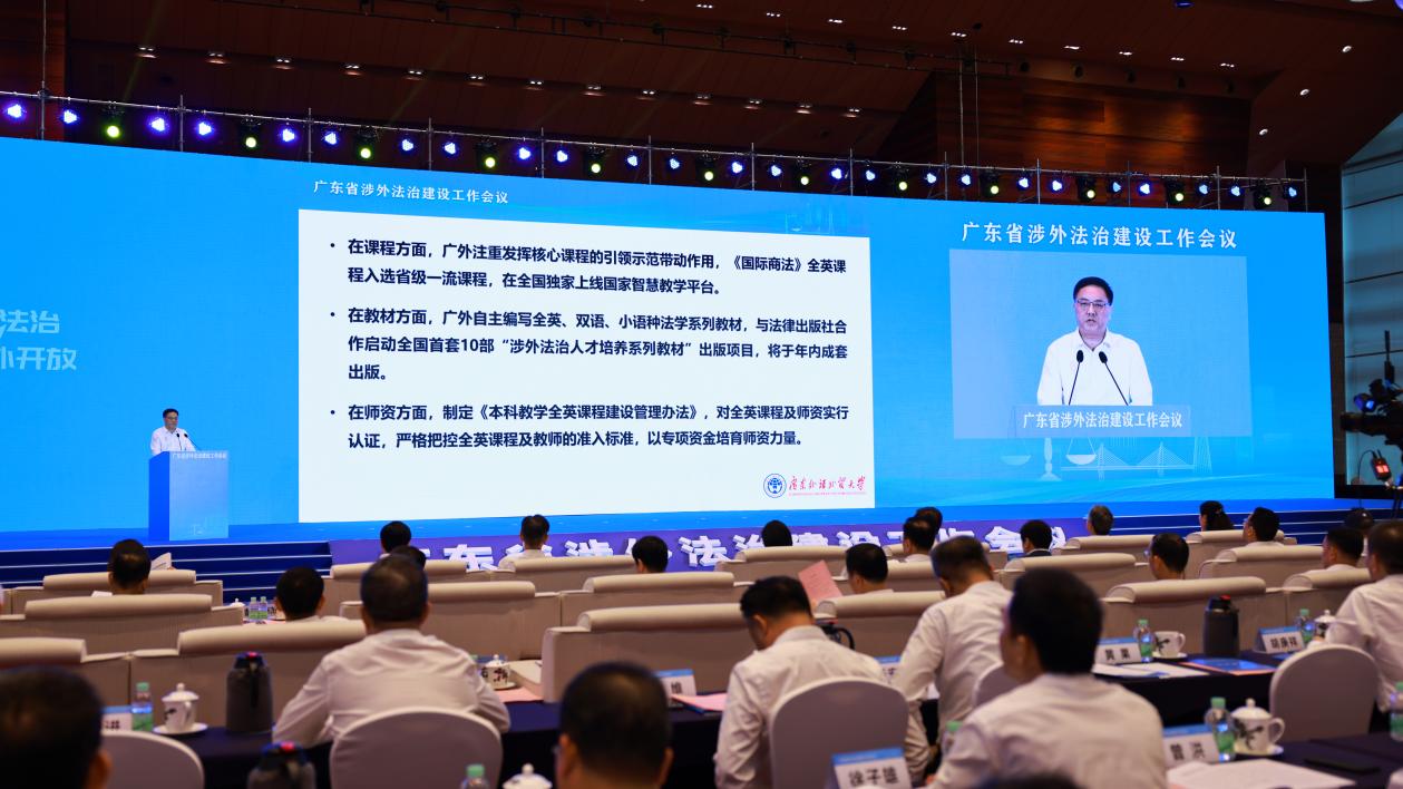 本网讯 7月19日,广东省涉外法治建设工作会议在广州召开。会议深入学习贯彻习近平总书记关于统筹推进国内法治和涉外法治的重要论述精神,谋划开创广东涉外法治建设新局面。省委依法治省办主要负责人出席会议,并对广东加强涉外法治建设工作提出具体要求。我校党委书记、校长石佑启出席会议并作主旨报告。中央依法治国办、司法部、最高人民法院、香港中联办,澳门中联办,广东省有关单位,港澳法律界有关人士,有关企业代表,有关法律服务机构和人员等400多位嘉宾代表参加会议。