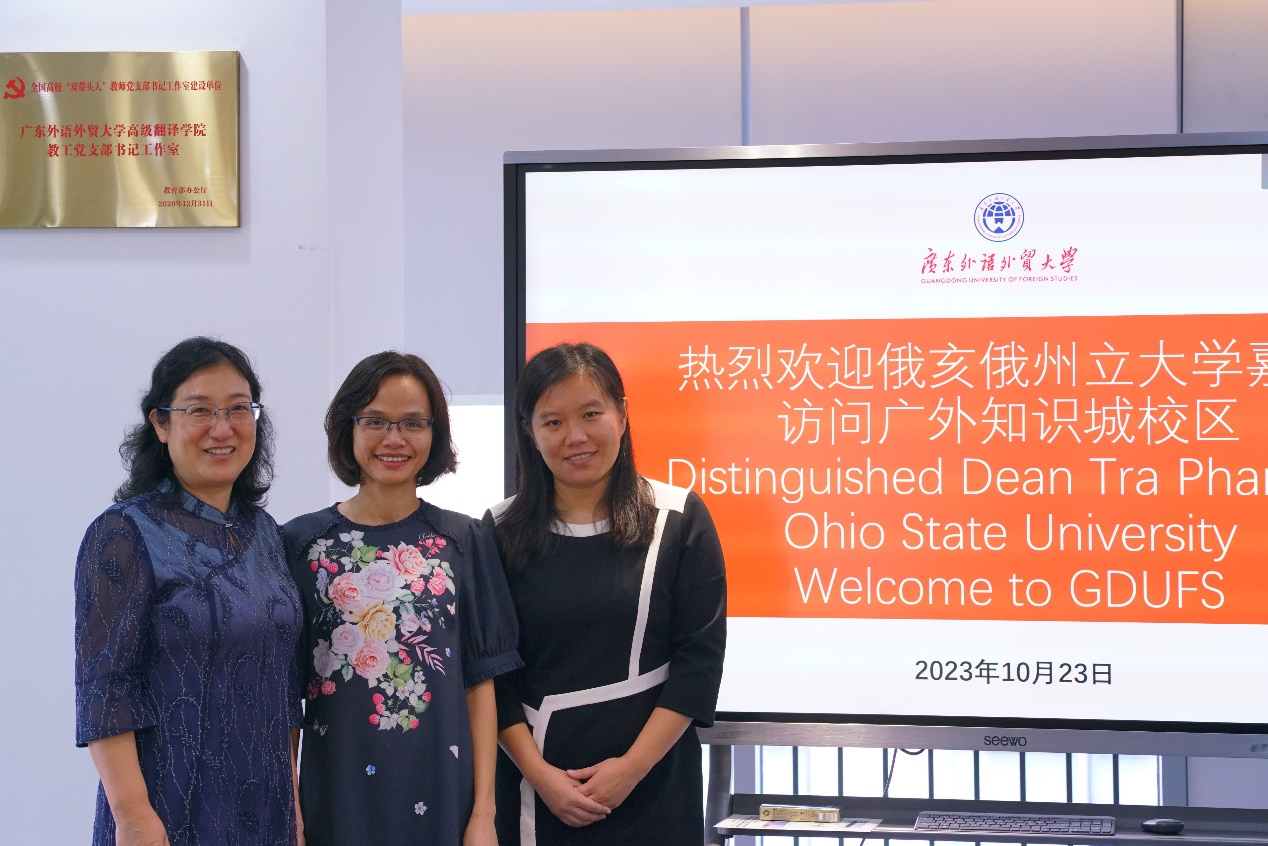 Pham副院长首先对广外法学院热忱接待表示衷心感谢,她介绍了俄亥俄州立大学法学院的学科优势、培养特色、城市区位与国际合作模式。她表示,广外法学学子英文水平优异,善于沟通,学风积极向上,给她留下深刻印象。期待与广外法学院早日达成合作协议,共同推动涉外法治人才培养与学科国际化建设。