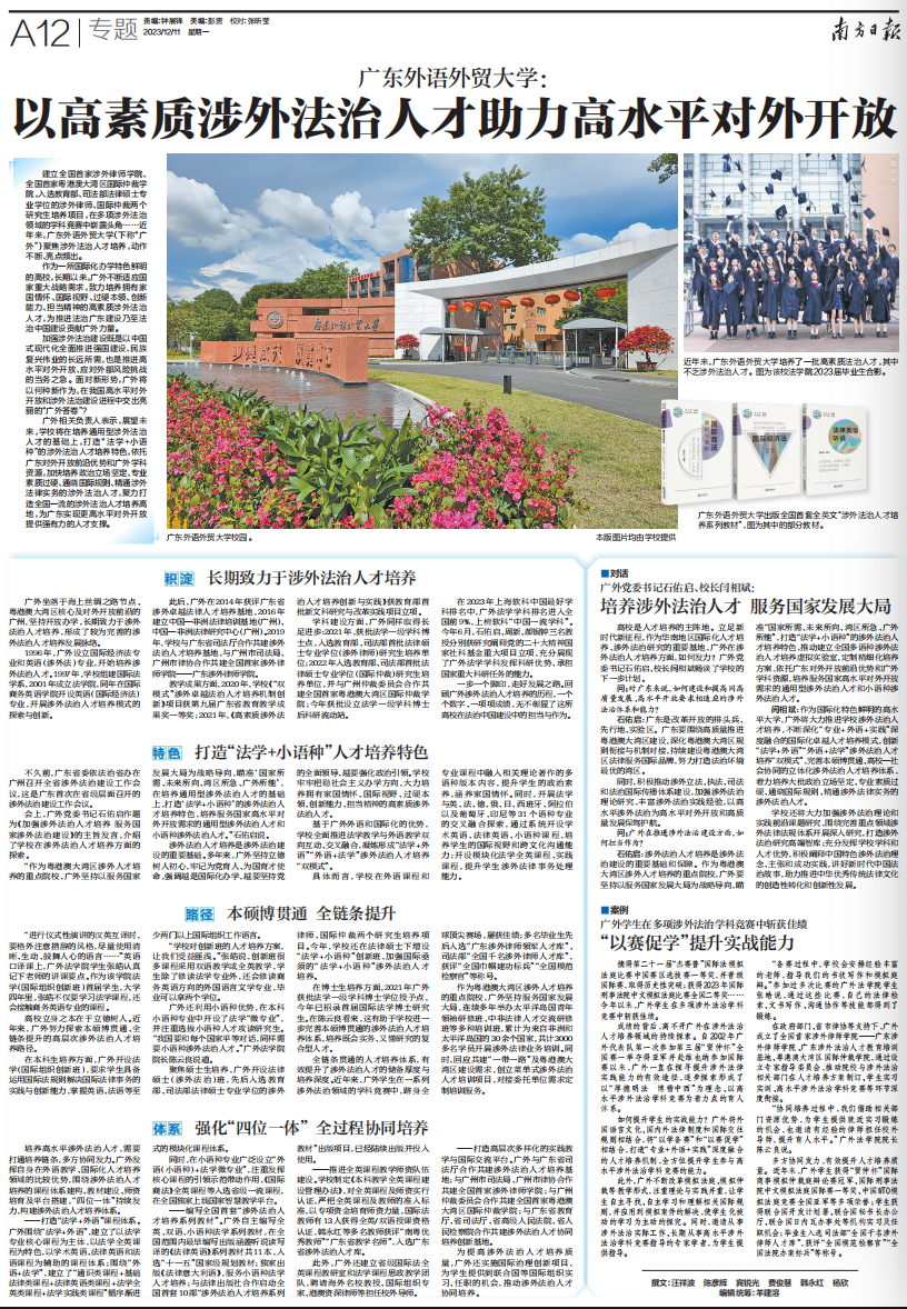 近年来,广东外语外贸大学培养了一批高素质法治人才,