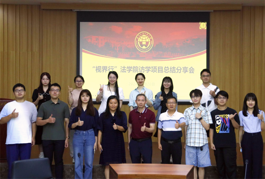 广外法学院和国际交流合作部在暑假前后共同推出多项法学学生“视界行”项目,组织多批次学生前往国外知名学校和国际组织访学交流。为进一步强化项目学习成果,促进涉外法治人才培养提质增效,2024年9月20日上午,法学院在大学城校区教学楼D102举行“视界行”访学项目总结分享会。法学院党委书记杨敏生、党委副书记范聪、外事秘书杨幸幸、辅导员任子滢及“视界行”访学项目学生代表以及学院部分本科和研究生参加会议。